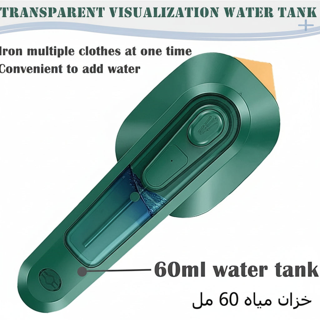Transparent Visualization Water Tank: The mini steam iron uses a 60ml integrated water tank design. It is convenient to add water and will not leak water, and you can iron many pieces of clothing at a time. Transparent visualization can keep an eye on the water usage of the water tank at any time, easy to operate, and safer.